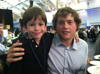 At the beginning of the evening a very beautiful young woman sat down at our table, she introduced herself as Kelly. Faith was immediately in love. After the athletes in attendance were introduced Matt Stafford came and sat next to her at the table. Immediately, Will’s entire disposition changed. Suddenly, there was life in my sons eyes, and a smile, a really excited happy smile that I had not seen for months.